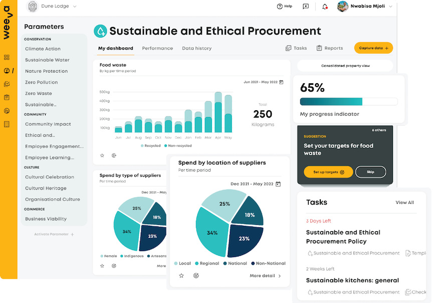 Sustainability Data Management Solution for Tourism and Hospitality Businesses: Weeva Case Study Weeva is a sustainability management platform for tourism and hospitality providers that helps businesses quantify their impacts across the 4Cs – Conservation, Community, Commerce and Culture – and set achievable next steps to improve their sustainability. Julie Cheetham Founder and Managing Director at Weeva TrainingAid Expert Team at TrainingAid Published: August 31, 2023 Case StudyReportingSustainable Business StrategyResource ManagementSocial ImpactConsulting ServicesTechnology Services Business Example: Weeva Location: (Head Office) London, United Kingdom Key Lessons: Don’t wait to take the first step. Many travel providers—particularly SMEs—find it difficult to know where and how to start their sustainability journeys. But you don’t need to know everything or have a dedicated sustainability team to start making progress. The important thing is to just start—and there are accessible, affordable tools that can guide and support you in gathering and tracking your data and measuring progress. Make sustainability an integral part of your business operations. Rather than thinking of sustainability management as a one-time exercise or check-list assessment, incorporating more sustainable practices can ensure your business’ long-term success and resilience. Facilitate staff engagement. A key part of effective sustainability management is task sharing across all members of your team, empowering them through education, upskilling, and awareness-building, and distributing responsibilities for data collection, tracking and reporting. Promote behaviour change. The whole point of measuring and managing your sustainability performance is to achieve progress over time. To ensure continuous improvement, the sustainability management tools and solutions you use must support your aim of promoting and incentivising positive behaviour change. Prioritise ease of use while understanding complexity. While sustainability management can be a complex challenge with many variables, it’s important to keep your processes and approaches simple, so that all your team members—including those who are new to sustainability—can be part of your efforts. Why Sustainability Management? The travel sector employs 10% of the world’s working population and contributes nearly US$6 trillion to the global economy each year. However, it is also responsible for up to 11% of global greenhouse gas emissions. Given this, the industry has a responsibility to improve its impact—and fast. The dangers of a rapidly heating world are becoming ever more apparent and only serve to exacerbate the challenges already faced by the travel industry. At the same time, consumers are increasingly considering sustainability when making choices about where to travel, how to get there, and where to stay. According to Booking.com's 2023 Sustainable Travel Report, 76% of travellers say they want to travel more sustainably over the coming 12 months. Tourism businesses that don’t prioritise sustainability are now at risk of being left behind. So, what can they do about it? For a long time, sustainability management was only accessible to large companies that could afford to employ chief sustainability officers or have large operational teams to support them. That meant that you only saw the big hotel chains and travel operators making gains in this space. But by leveraging technology, it is now possible to make science-based, and data-driven sustainability management tools accessible to small and medium-sized enterprises (SMEs), which make up 80% of all tourism businesses. This is what has driven the development of Weeva. Key Priorities for Sustainability Management Solutions Weeva began as a think tank of industry experts volunteering their time and expertise. In 2020, Julie Cheetham, with her Weeva co-founder, Lindsey Walter (Nianova Advisors), brought together a group including Dr. Delphine Malleret-King (The Long Run), Dr. Hando Hain, and Saúl Blanco Sosa (Preferred by Nature), Dr. Andrea Ferry (sustainability consultant), and Juliet Kinsman (Conde Nast Traveller UK), to name a few. The experts assessed the landscape of sustainability solutions for hospitality providers and identified the need for a platform that would be accessible to businesses of all sizes, providing them with a holistic view of their impacts, and the practical steps they can take to improve their practices. Some of the key findings include: Beyond assessment: Many existing sustainability tools focused on one-off assessments. While assessing one’s performance is of course important, such tools only provide a snapshot in time, and as such, are limited as tools for guiding businesses on a sustainability journey and finding opportunities to improve. Certification as a means to an end: While certifications are important—particularly for helping consumers make informed decisions—businesses need management solutions that support continuous improvement, towards and beyond securing a certification. Nudging for sustainability: To guide businesses on a sustainability journey, a technology-led platform needs to ‘nudge’ them towards setting targets and achieving goals, since research showed that this is often a barrier for SMEs. This means offering tools to measure a business’ initial baseline; spot inefficiencies; and increase productivity. Engaging the whole team: It’s also important for tourism businesses to have a sustainability management platform that enables various individuals across the organisation to manage tasks and data capture, which improves productivity, as well as keeping employees engaged and driving towards common goals. Partnerships to Bring Vision to Life Building on this vision, Weeva co-founders Julie and Lindsey collaborated closely with partners at The Long Run as well as with specialist experts in the fields of carbon emissions, s