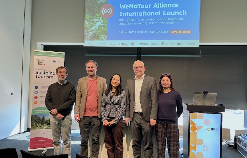 WeNaTour Project: E-Learning Programme on Welfare, Nature and Innovation in Tourism The WeNaTour E-learning Programme is designed to provide fundamental knowledge and practical tools to innovate in sustainable tourism. Those who complete the course will earn a certificate of attendance by the WeNaTour consortium, with the declaration that the course is equivalent of 6 ECTS. TrainingAid Expert Team at TrainingAid Published: March 17, 2025 ProjectsInnovationDestination ManagementTourism Skills and Jobs WeNaTour is a three-year European initiative funded through the Erasmus+ program. The project aims at training new professionals for sustainable tourism and exploring emerging markets, while keeping the well-being of local communities at the core of its strategies, towards a more responsible and sustainable future. Up-Skilling and Re-Skilling in Sustainable Tourism The WeNaTour training programme, targeting students and professionals seeking careers in tourism, offers the following opportunities: An online course on Sustainable Tourism (starting April 2025, hosted by the University of Padua). The WeNaTour E-learning Course is designed to provide fundamental knowledge and practical tools to innovate in sustainable tourism. The course will be hosted by the Moodle platform of the University of Padova and will include: Video lessons, assigned reading materials, quizzes & activities. An intensive two-week Specialization Programme in Italy and Austria for the top 20 students, funded by Erasmus+ mobility grants. The EU Specialization Programme is designed for students and professionals in tourism (18+ years old). Access is granted through the e-learning course, with top participants receiving mobility grants for a 14-day intensive program in Italy and Austria. Local VET courses in Ireland and Austria for those transitioning into tourism careers. The WeNaTour VET courses are designed for those transitioning into the tourism industry, offering professional qualifications and hands-on experience. Courses will focus on nature-based and sustainable tourism delivered in-person by Meath Partnership (Ireland) & BFW (Austria). At the international launch event during ITB Berlin 2025, the WeNaTour training programme and the Alliance were officially announced. E-learning on Welfare, Nature and Innovation in Tourism The WeNaTour E-learning Course is a training opportunity designed for those who want to gain knowledge and practical tools to innovate in the field of sustainable tourism. The course will take place on the Moodle platform of the University of Padua and will include video lessons, reading materials, quizzes, and interactive activities. Thanks to its asynchronous format, participants will be able to organise their study time according to their own needs, without schedule constraints. Throughout the programme, four live webinars with international professionals and real case studies will provide the chance to interact directly with experts and explore key topics in sustainable tourism. WeNaTour public webinar series #1 What makes a DMO effective in sustainable destination management? - April 9th#2 How can destinations measure and optimise tourism’s socio-economic impact? - April 16th#3 What does cultural sustainability mean for destinations and communities? - May 7th#4 How can tourism be more nature positive through regenerative approaches? - May 12th The course will be led by the University of Padua (Italy), with the support of WeNaTour partners. The teaching staff includes both academics and professionals with hands-on experience in the field, offering a practical and up-to-date perspective on the challenges and opportunities of sustainable tourism. Need Solutions for Your Organization’s Sustainability Training? Through our own training programmes, in the framework of partner projects, and as custom offers to groups, we’ve trained and engaged thousands of tourism industry stakeholders (public, private and civil society sectors). Let us work together to advance your organization’s sustainability training goals. ProjectsInnovationDestination ManagementTourism Skills and Jobs Share this