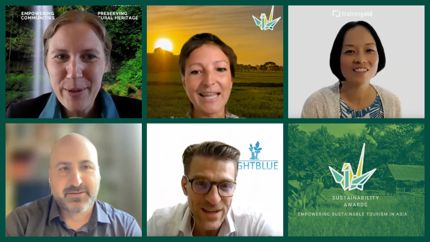 EXO Foundation Sustainability Awards Panel Discussion: Sustainable Practices in the Tourism Sector The EXO Foundation Sustainability Awards program honored organizations and projects advancing sustainability in Asia. The 2023 awardees were announced on September 28th during a virtual award ceremony, followed by a panel discussion on sustainability in Asia by Nia Klatte (moderator), Ayako Ezaki (TrainingAid), Bijan Khazai (Hotel Resilient), and Benjamin Lephilibert (LightBlue Environmental Consulting). TrainingAid Expert Team at TrainingAid Ayako Ezaki Director of Training Strategy and Development at TrainingAid Published: October 03, 2023 TrainingAid NewsBiodiversityConservationCultural HeritageSustainable DevelopmentCommunity OrganizationTour Operator Sustainability Awards: Sustainable Innovations in Asia The inaugural edition of the EXO Foundation Sustainability Awards honored organizations and projects advancing sustainability from across Asia. With the aims of identifying, supporting and promoting exemplary initiatives and projects (by both businesses and non-profit organizations) that seek to innovate sustainability in Asia, the award program selected twenty nominees, from over 50 applicants, across five categories: Climate Action, Circular Economy, Regenerating Nature, Empowering Communities and Protecting Cultural Heritage. The 2023 awardees were announced on September 28th during a virtual award ceremony, attended by 100+ awardees, partners, supporters and sustainability change makers from across the region. Panel Discussion: Sustainable Tourism Practices in Asia Following the award ceremony, a virtual panel discussion on sustainability in Asia was hosted, moderated by Nia Klatte, and with contributions by Ayako Ezaki (TrainingAid), Bijan Khazai (Hotel Resilient), and Benjamin Lephilibert (LightBlue Environmental Consulting), providing insights on the current state of tourism in Asia, post-pandemic impacts, and the way forward for sustainable and responsible tourism practices. The panel highlighted opportunities to promote and strengthen sustainability efforts in Asia (particularly in the post-COVID context), and key ingredients for making tourism more sustainable, regenerative and climate-positive, such as: Shifting mindsets about the needs and relevance of sustainability issues. Speaking the right language to connect with people about sustainability priorities. Spreading innovative ideas, examples and inspirations through collaboration within and across the sector. The recording of the panel discussion is available here: TrainingAid NewsBiodiversityConservationCultural HeritageSustainable DevelopmentCommunity OrganizationTour Operator Share this